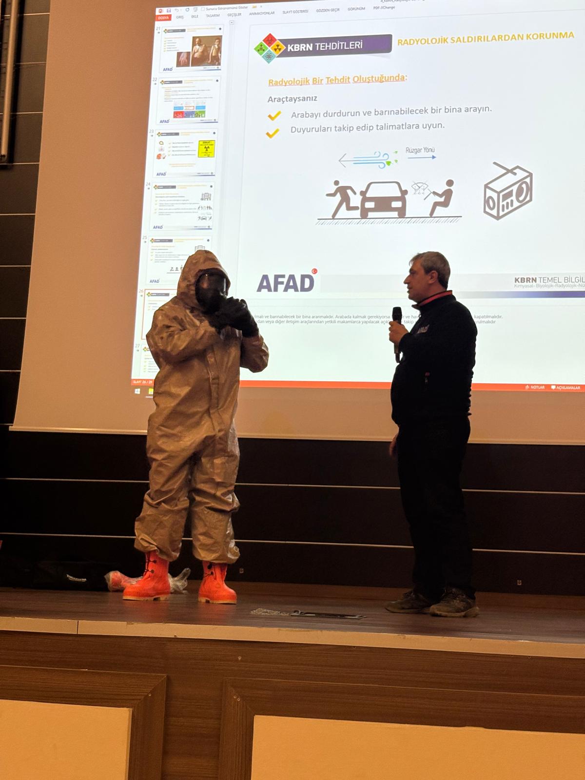 Fakültemiz ile AFAD iş birliği kapsamında düzenlenen KBRN (Kimyasal, Biyolojik, Radyolojik ve Nükleer) Farkındalık Eğitimi, öğrencilerimizin yoğun katılımıyla gerçekleştirildi.