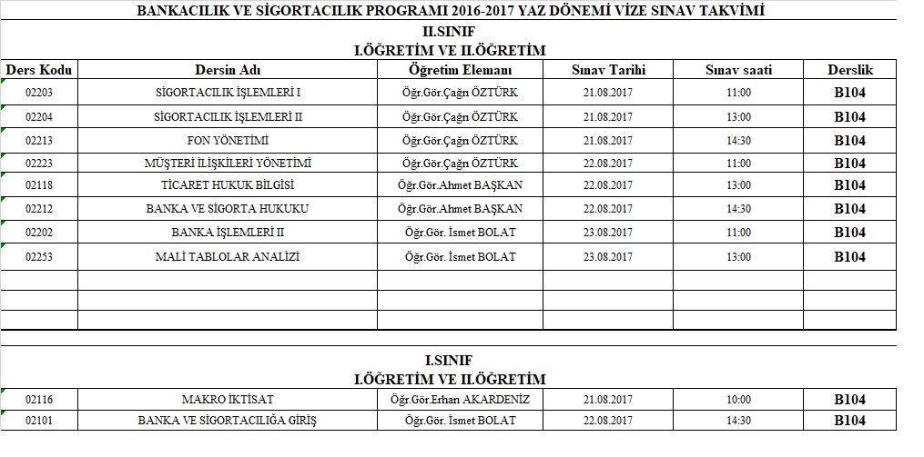 Yaz Okulu Final Sınavı Tarihleri