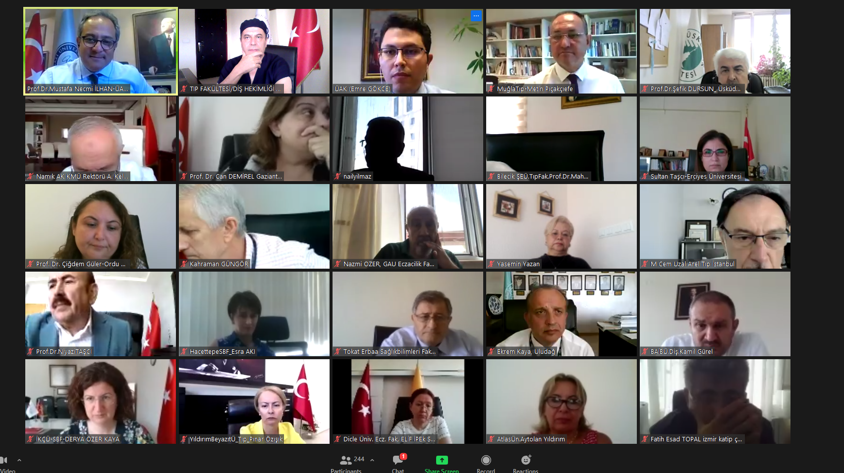 Üniversitelerarası Kurul Başkanlığı - Tıp Sağlık Bilimleri Eğitim Konseyi (ÜAK-TSEK) 2021/5 nolu toplantısı 26.07.2021 Perşembe günü saat 10.30 da çevrimiçi olarak gerçekleştirdi. Üniversitelerin Tıp, Diş Hekimliği, Eczacılık, Sağlık Bilimleri, Hemşirelik, Fizyoterapi ve Rehabilitasyon, Veteriner Fakültesi Dekanlarının katılım sağladığı toplantıya Fakültemiz Dekanı Prof. Dr. Mehmet BEKERECİOĞLU katılım sağladı.