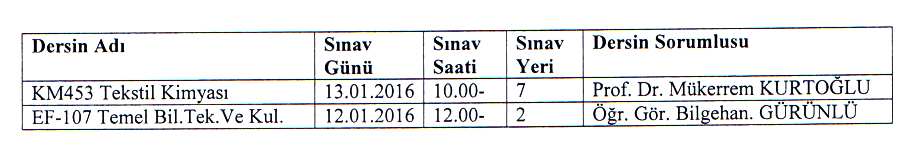3- KİMYA BÖLÜM BAŞKANLIĞINCA BELİRLENEN SINAVLAR VE UYGULAMA TARİHLERİ