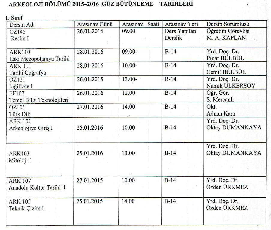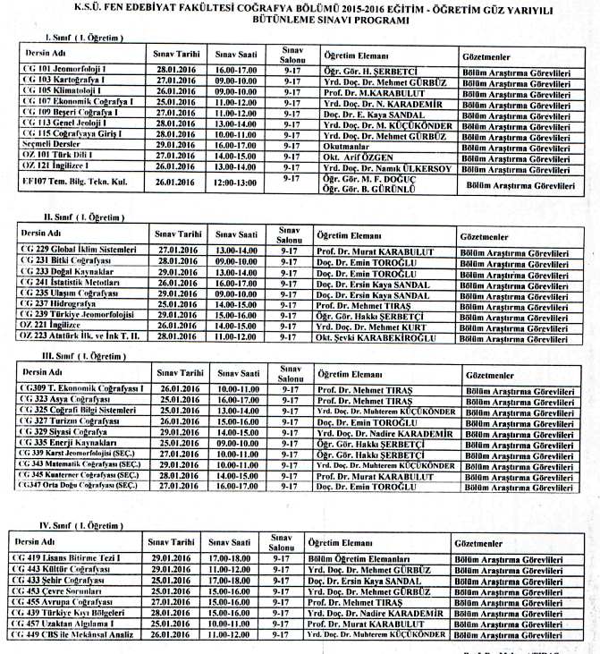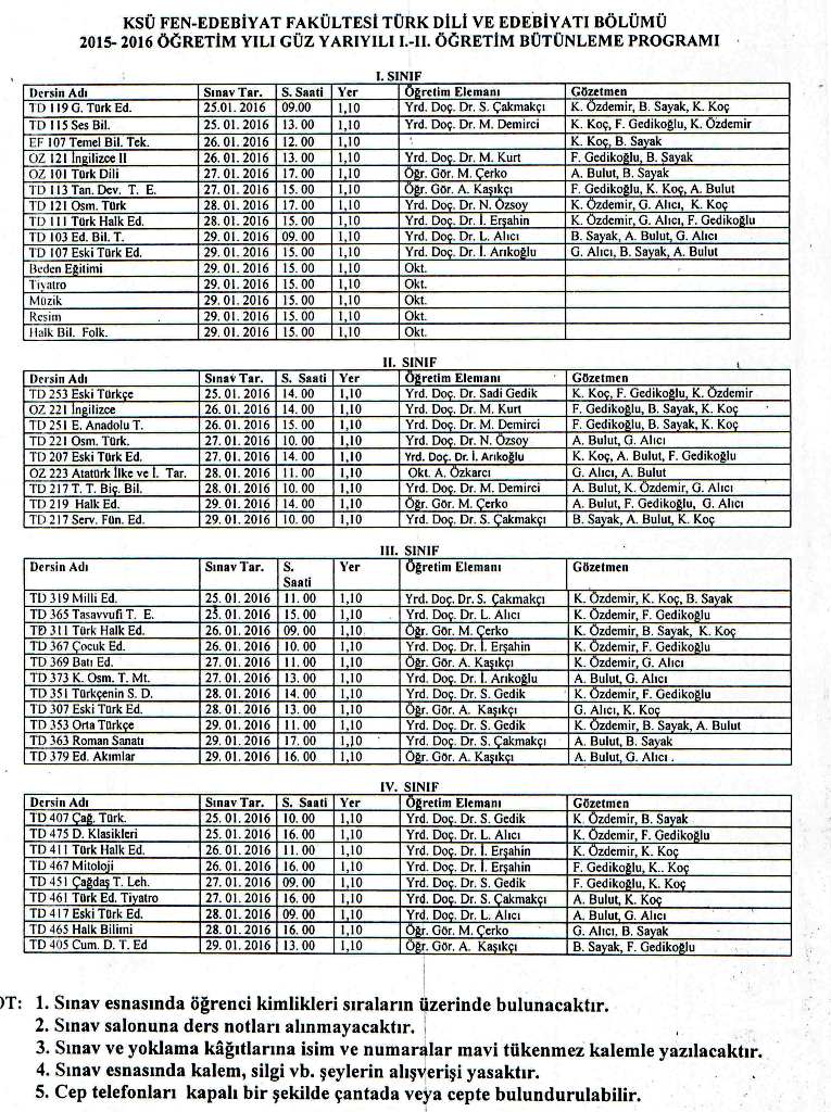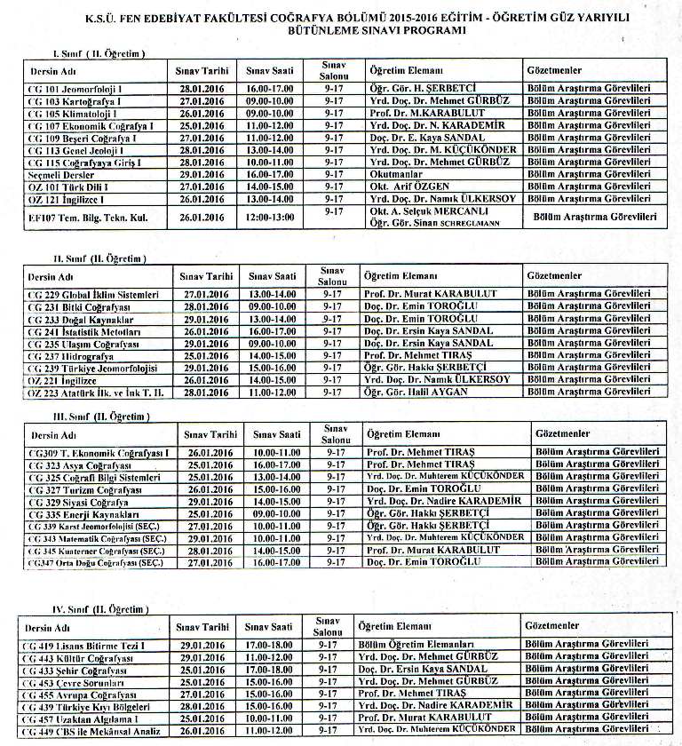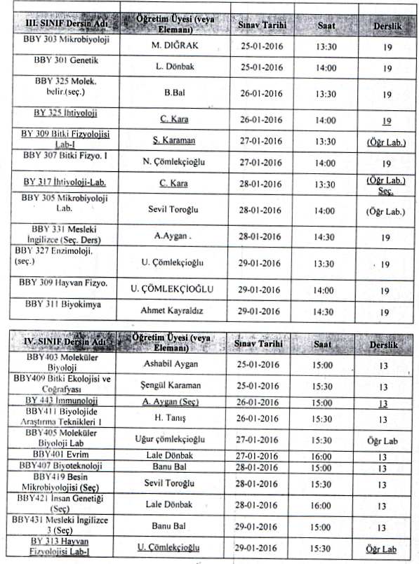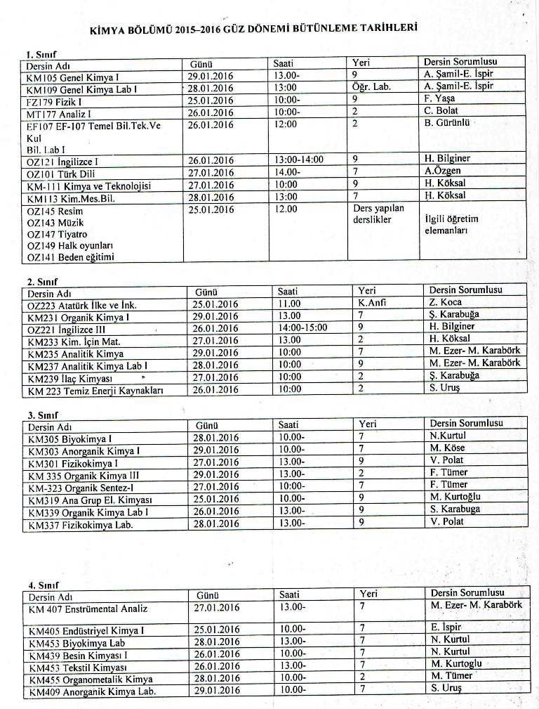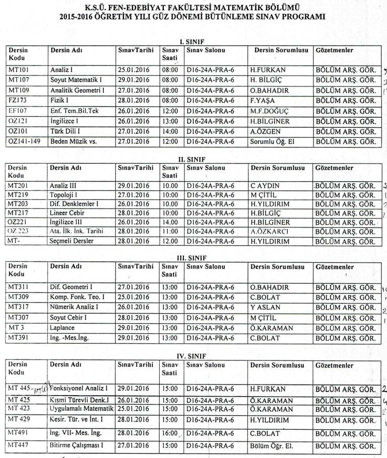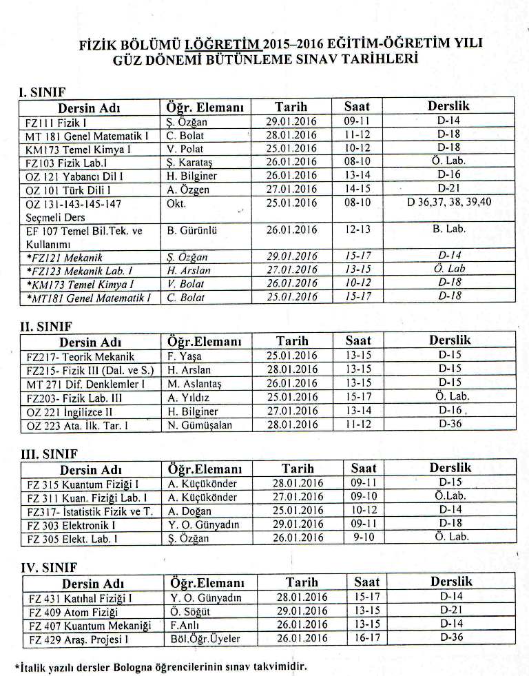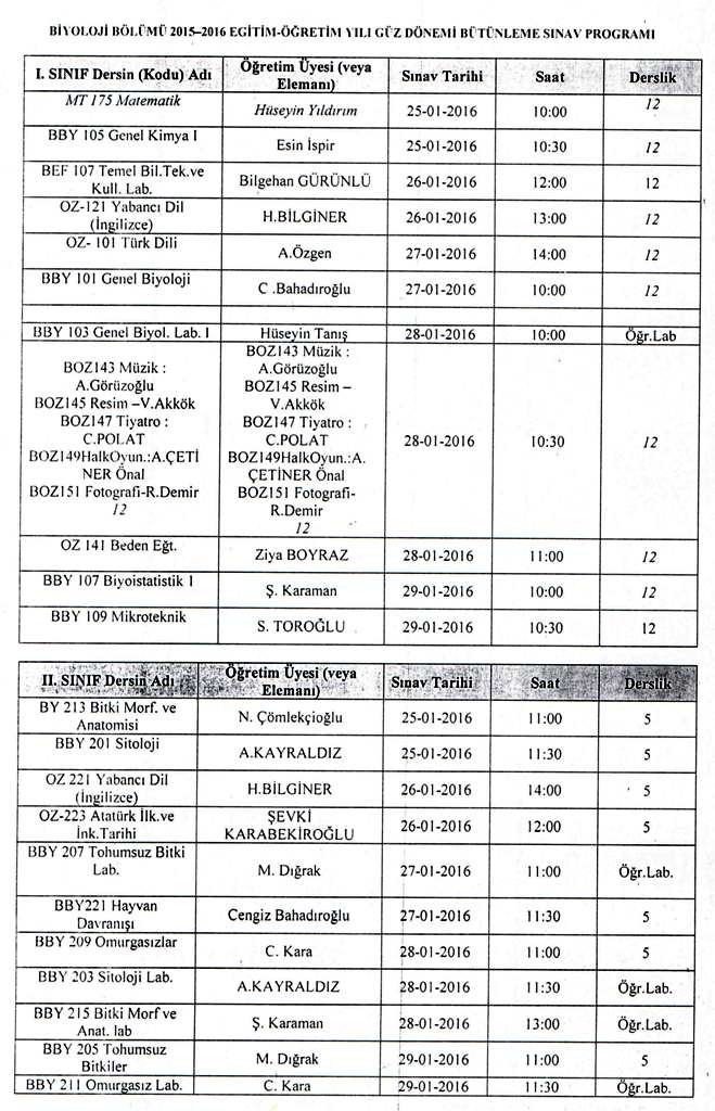 ÖĞRENCİLERİMİZİN DİKKATİNE! 2015-2016 GÜZ YARIYILI BÜTÜNLEME SINAV PROGRAMI