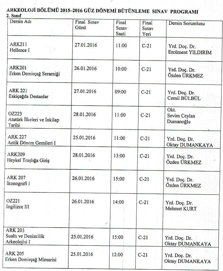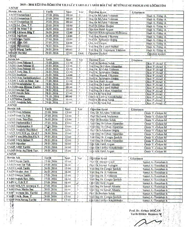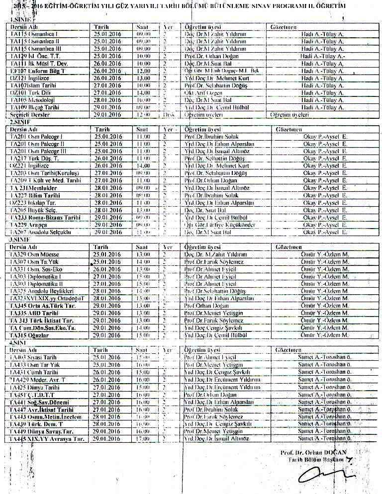 2015 - 2016 Eğitim-Öğretim yılı Tarih Bölümü I. ve II. Öğretim Güz yarıyılı Bütünleme Sınav Proğramı Aşağıda sunulmuştur.