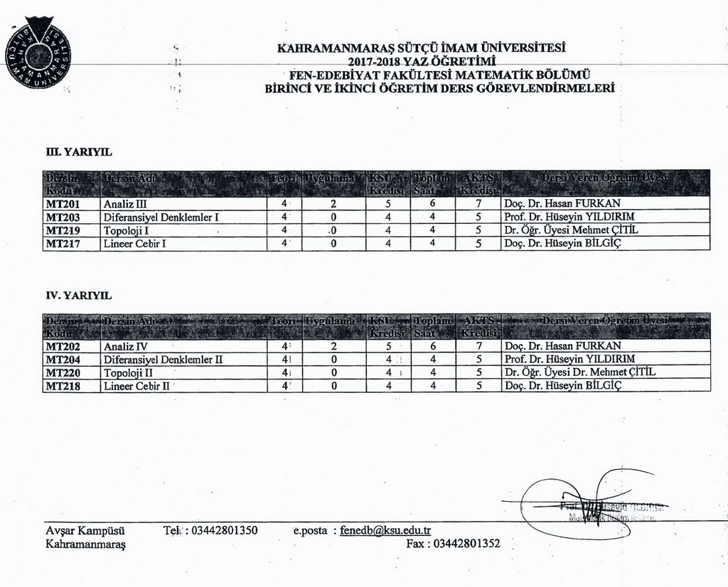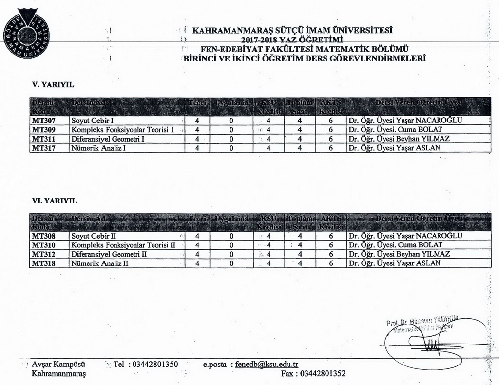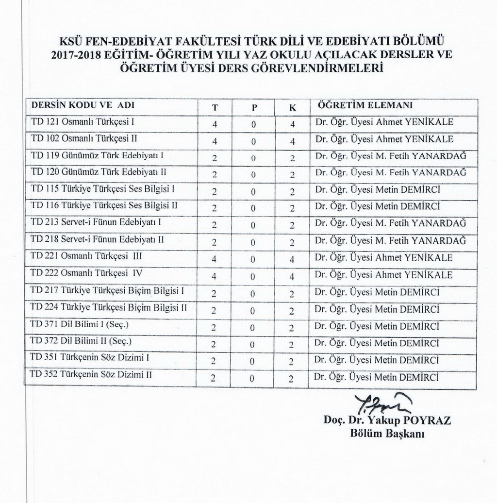 Yaz Okulunda Açılan Dersler