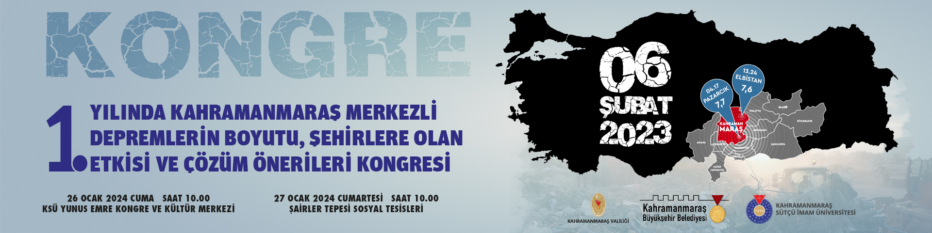 Üniversitemiz tarafından 1. Yılında Kahramanmaraş Merkezli Depremlerin Boyutu, Şehirlere Olan Etkisi ve Çözüm Önerileri Kongresi sayfasına ulaşmak için linki tıklayınız.