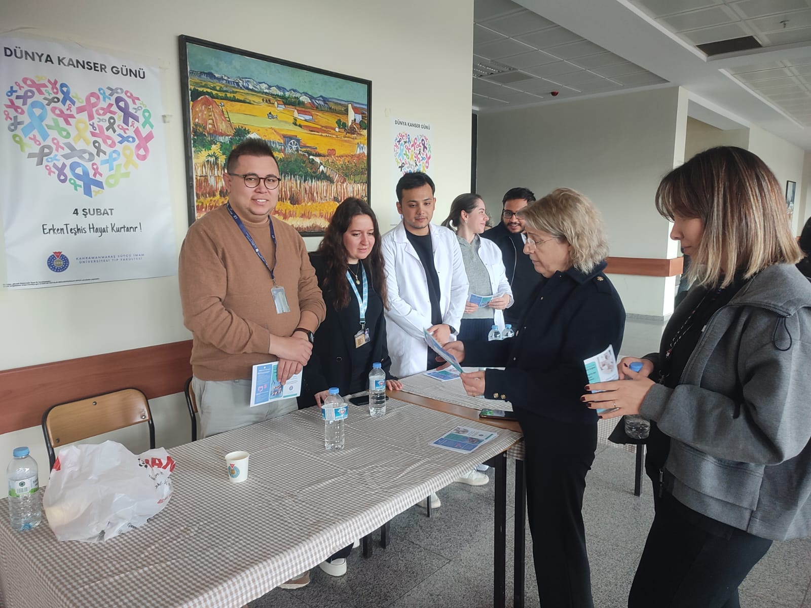 Fakültemiz Halk Sağlığı Ana Bilim Dalı Başkanlığı, "Davranışsal ve Sosyal Etkinlik Planlanması" kapsamında 4 Şubat Dünya Kanser Günü sebebiyle KSÜ Sağlık Uygulama ve Araştırma Hastanesi'nde poliklinik, hasta ve hasta yakınlarına kanser ve tarama programları konusunda farkındalığı artırmaya yönelik bir aktivite yaptı.